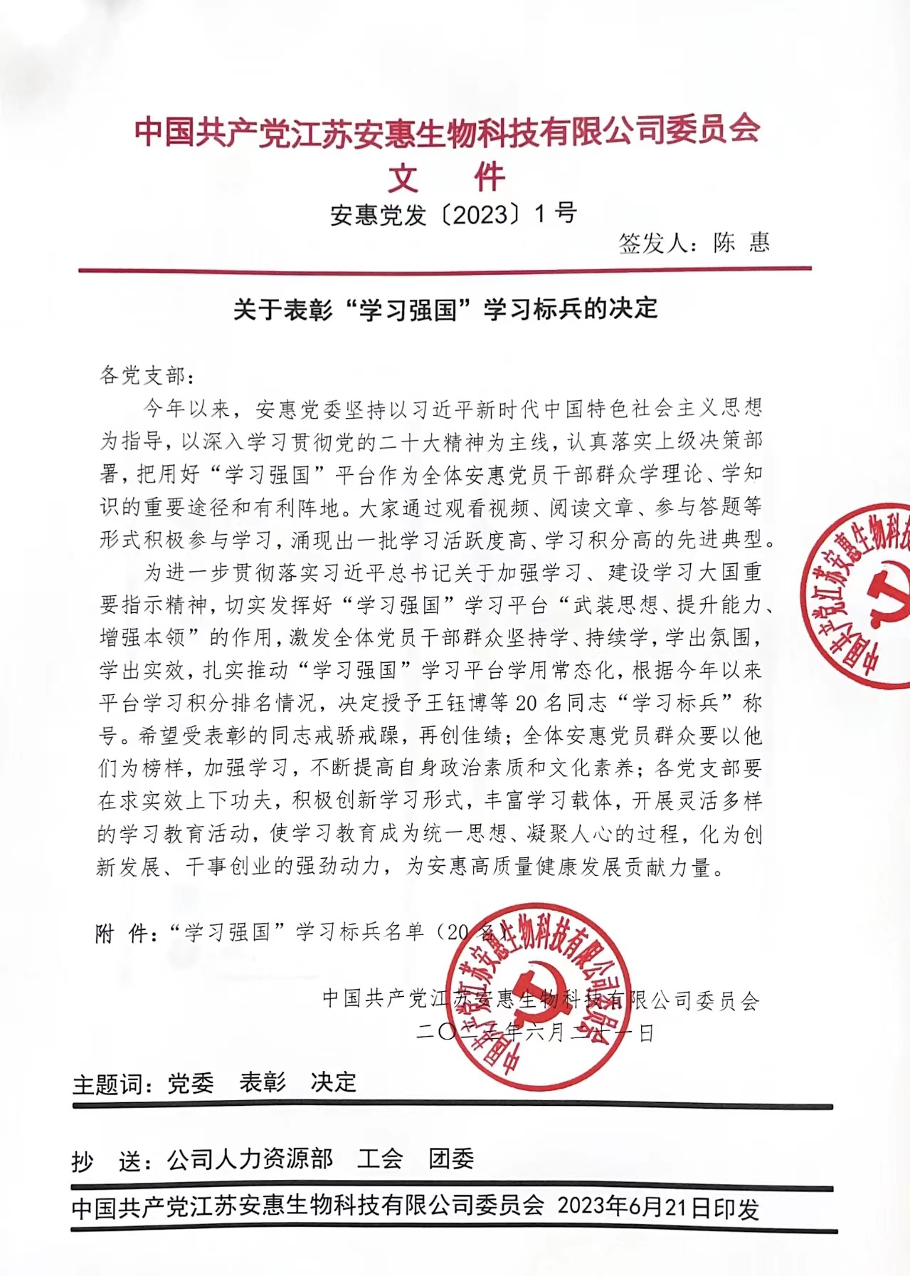 安惠黨委關(guān)于表彰“學(xué)習(xí)強(qiáng)國”學(xué)習(xí)標(biāo)兵的決定