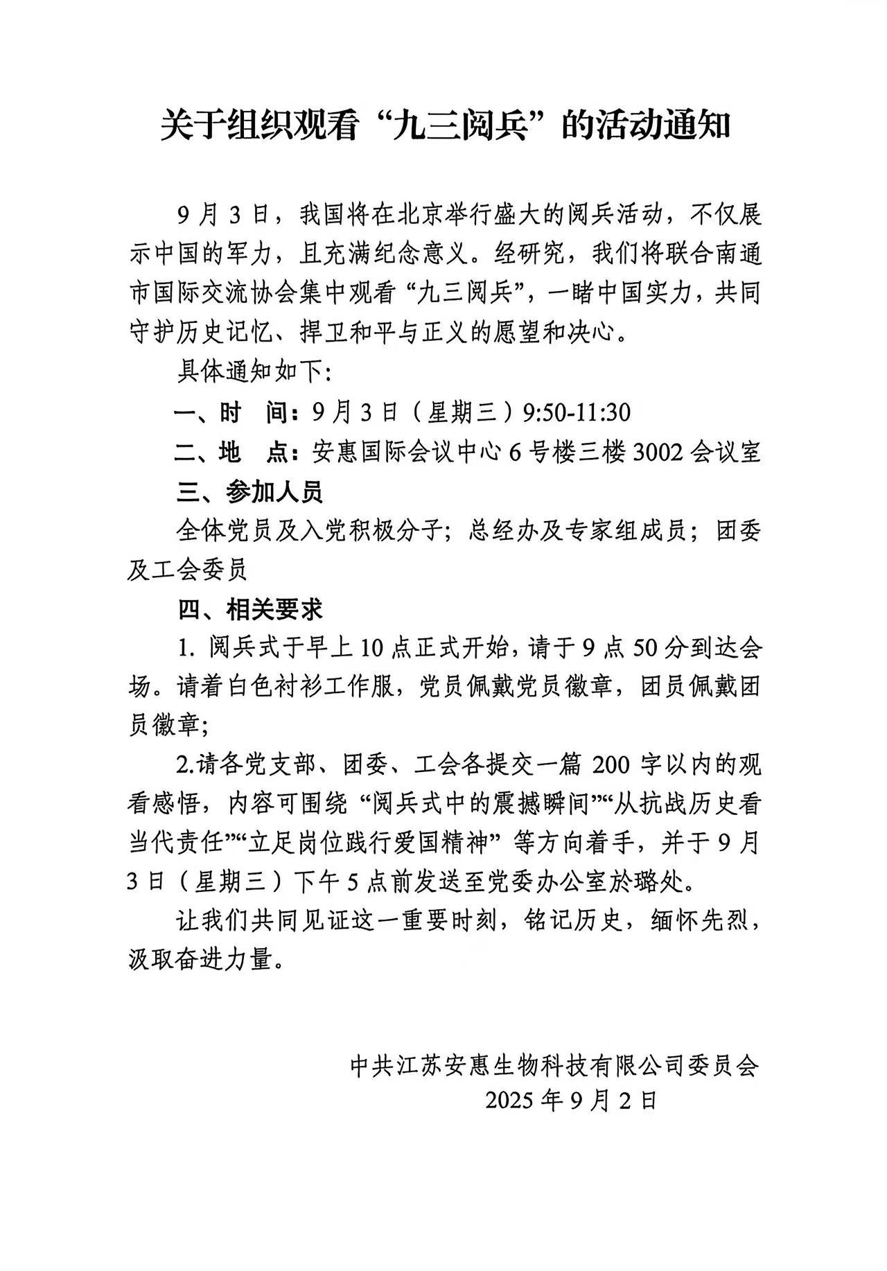關(guān)于組織觀看“九三閱兵”的活動(dòng)通知