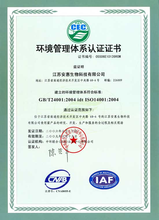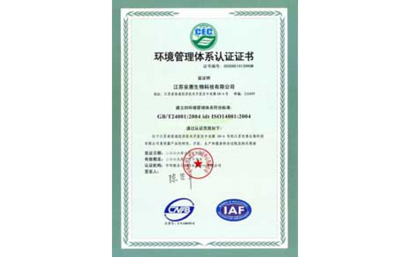 2006年6月20日,公司通過ISO14001環(huán)境管理體系認證。