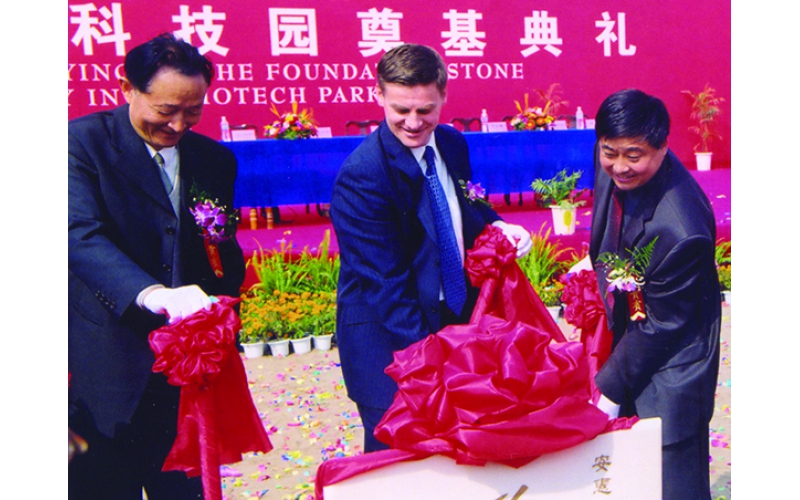 2002年10月24日“安惠國際生物科技園”奠基,參加奠基典禮的有新西蘭國家黨主席英格里希及他所率領(lǐng)的政府代表團和科技代表團,南通市委、市政府領(lǐng)導(dǎo)和有關(guān)專家學(xué)者計200多人。