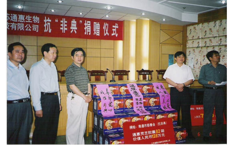 2004年9月24日,陳惠董事長向南通市副市長宋飛捐贈的公司產(chǎn)品作為首屆世界大城市帶發(fā)展高層論壇專用保健品。