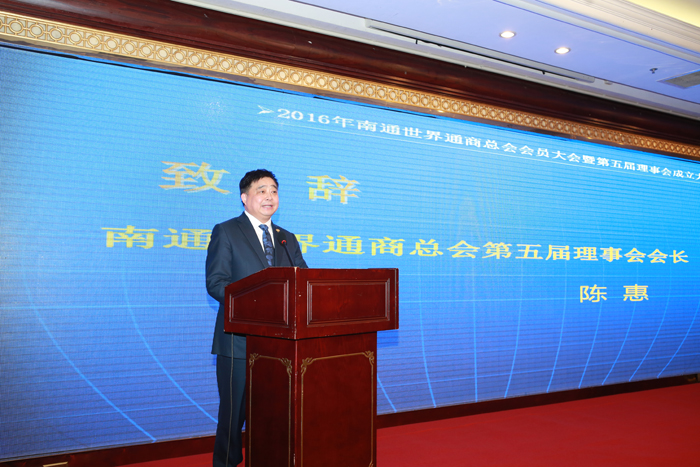 2016年2月18日,對(duì)于安惠家人來講,是個(gè)令人欣喜的好日子。在江蘇省人民政府外事僑務(wù)辦公室主任王華、南通市人民政府外事僑務(wù)辦公室主任王浦堅(jiān)和近百位優(yōu)秀通商代表的見證下,陳惠董事長(zhǎng)當(dāng)選南通世界通商總會(huì)第五屆理事會(huì)會(huì)長(zhǎng)。