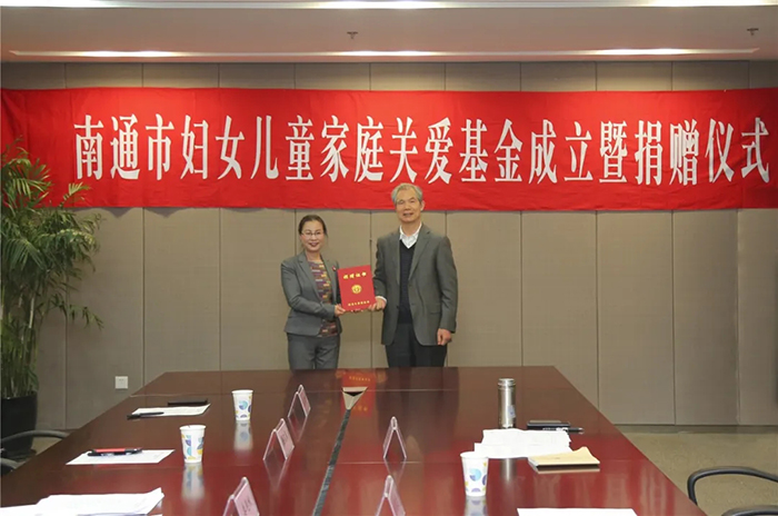 2020年4月20日,南通市婦女兒童家庭關(guān)愛(ài)基金成立。南通市女企業(yè)家協(xié)會(huì)副會(huì)長(zhǎng)、安惠公司副董事長(zhǎng)陸漢萍為基金注入第一筆愛(ài)心善款10萬(wàn)元。