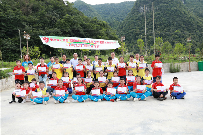 2018年是安惠愛心基金“西南助學 陽光沐浴”計劃實施的第五年。每年安惠江海志愿者們都會來到貴州省獨山縣麻尾鎮(zhèn)開展愛心助學活動,與這里的師生們相聚。7月8-12日,志愿者們帶著6名南通的孩子們再次踏上這片土地,和當?shù)貙W生互動、交流、學習,一起度過一段非常有意義的快樂時光。安惠公司副董事長陸漢萍也專程來到麻尾,看望一直牽掛著的學生們,走訪受資助的學生,并實地了解空氣能熱水器的使用情況。